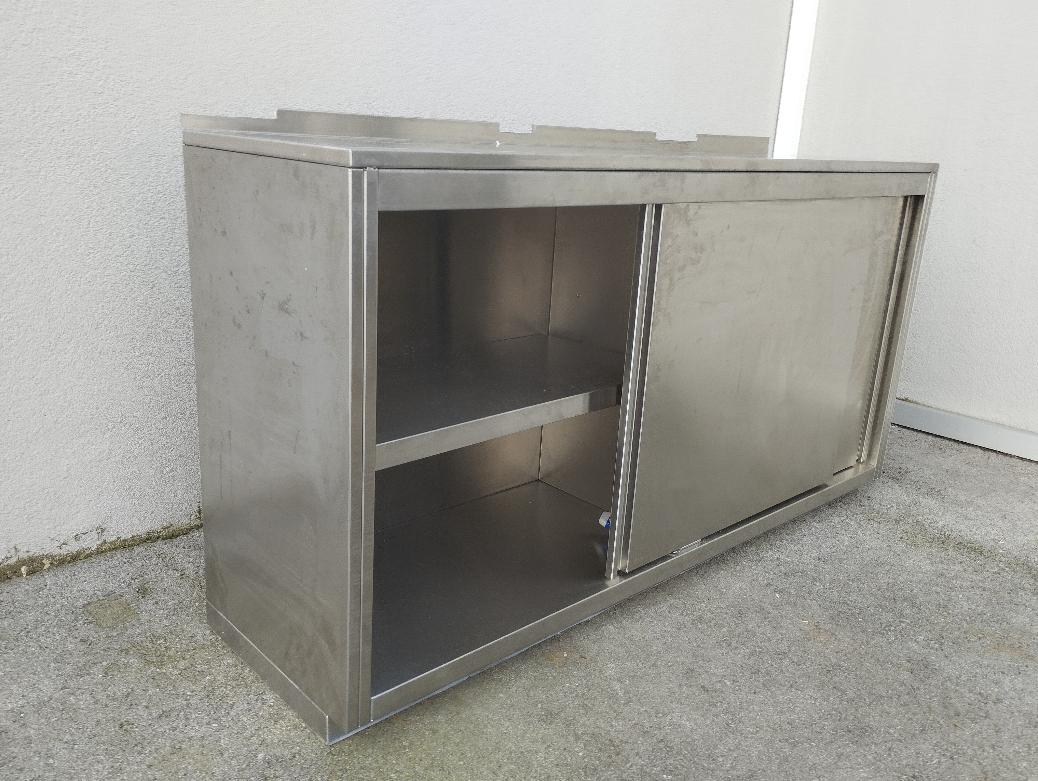 - Unterschrank vertikal in Mitte geteilt mit Schiebtüren und Zwischenbord